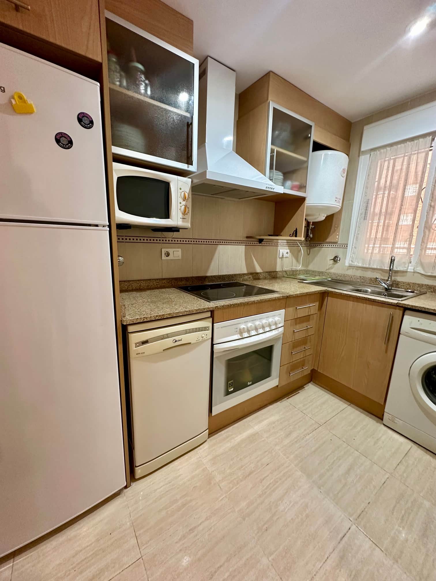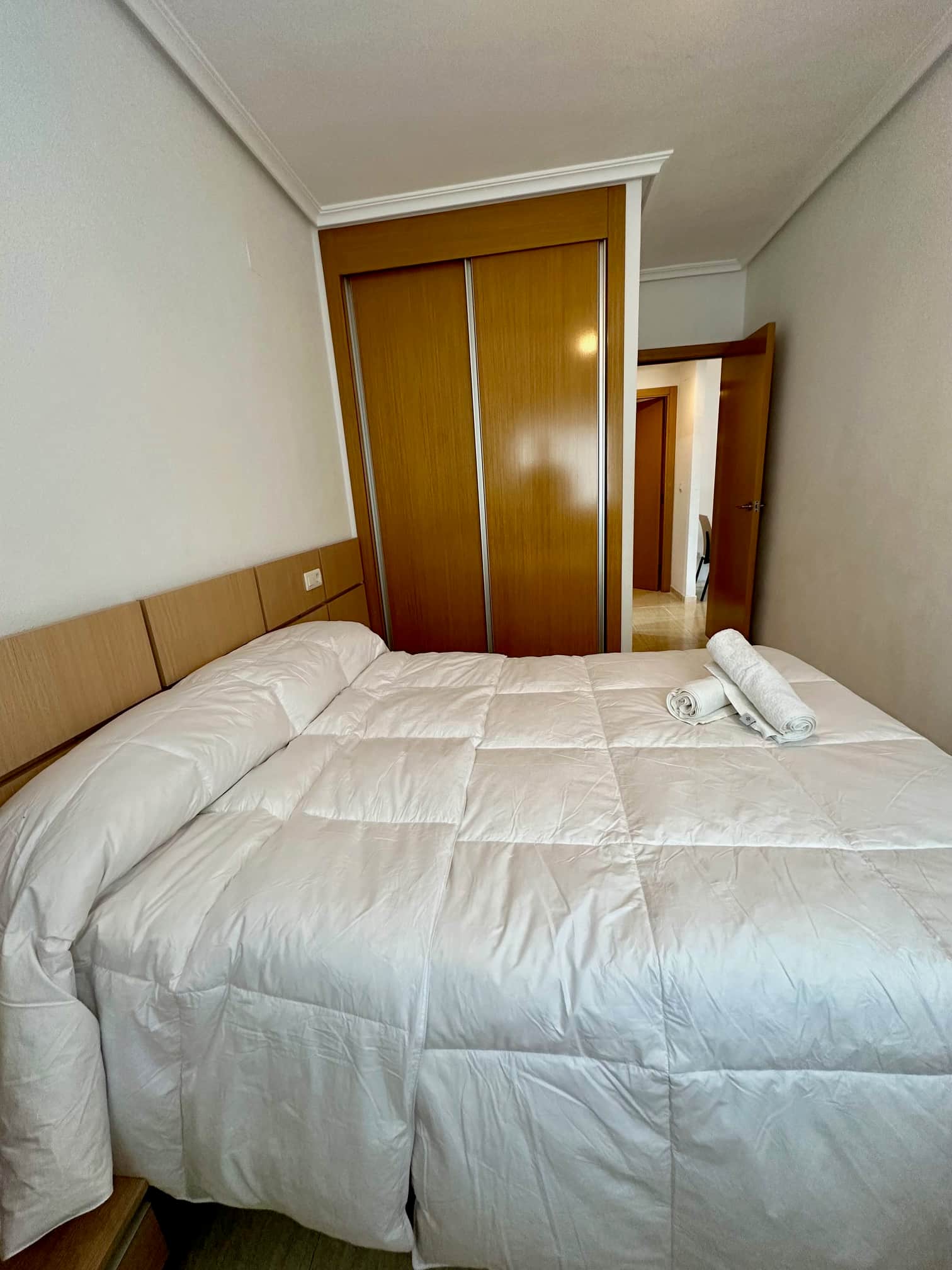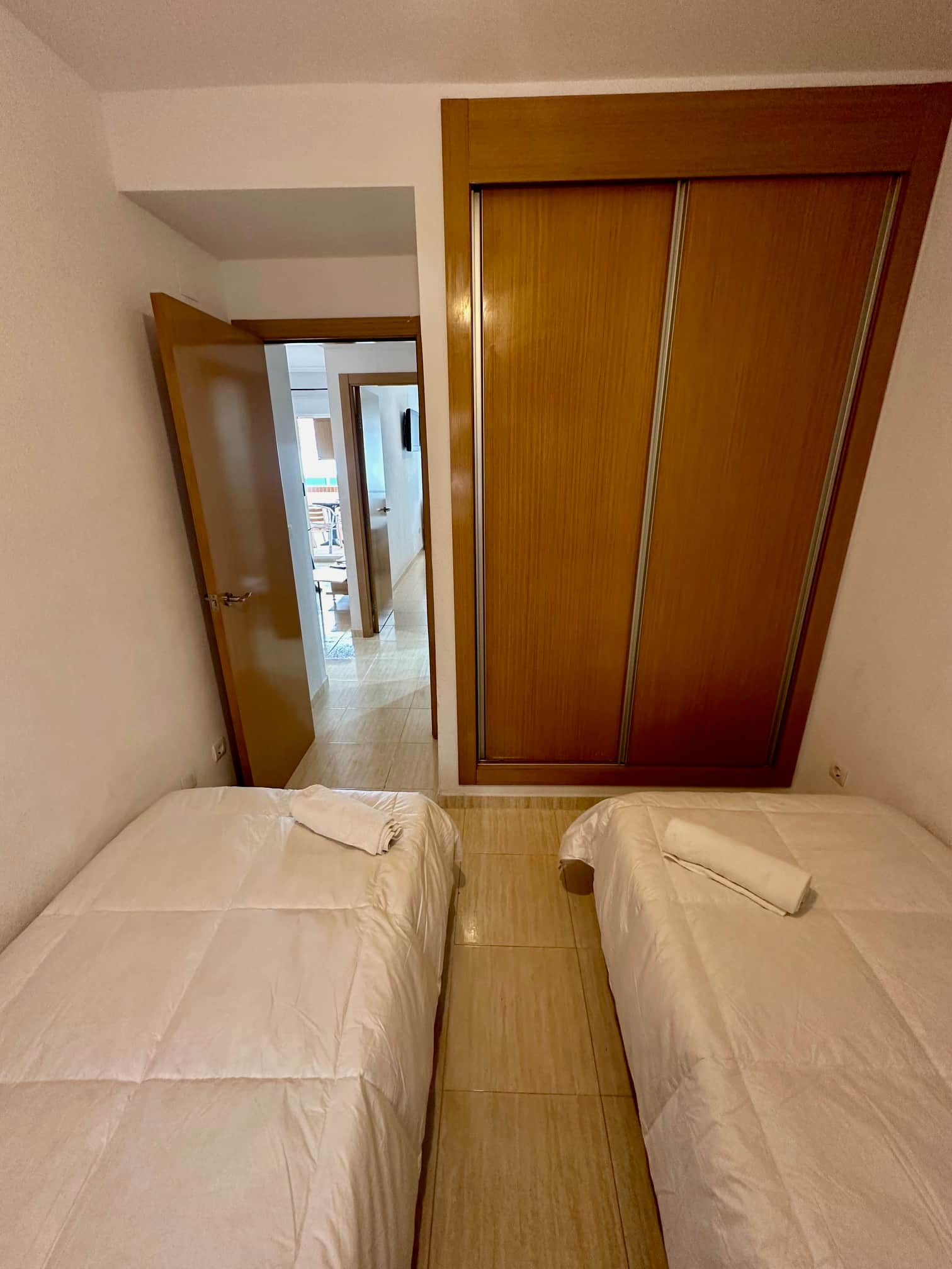 Dispone de 2 dormitorios, uno con cama de matrimonio y el otro con dos camas individuales. Cuenta con un cuarto de baño, una